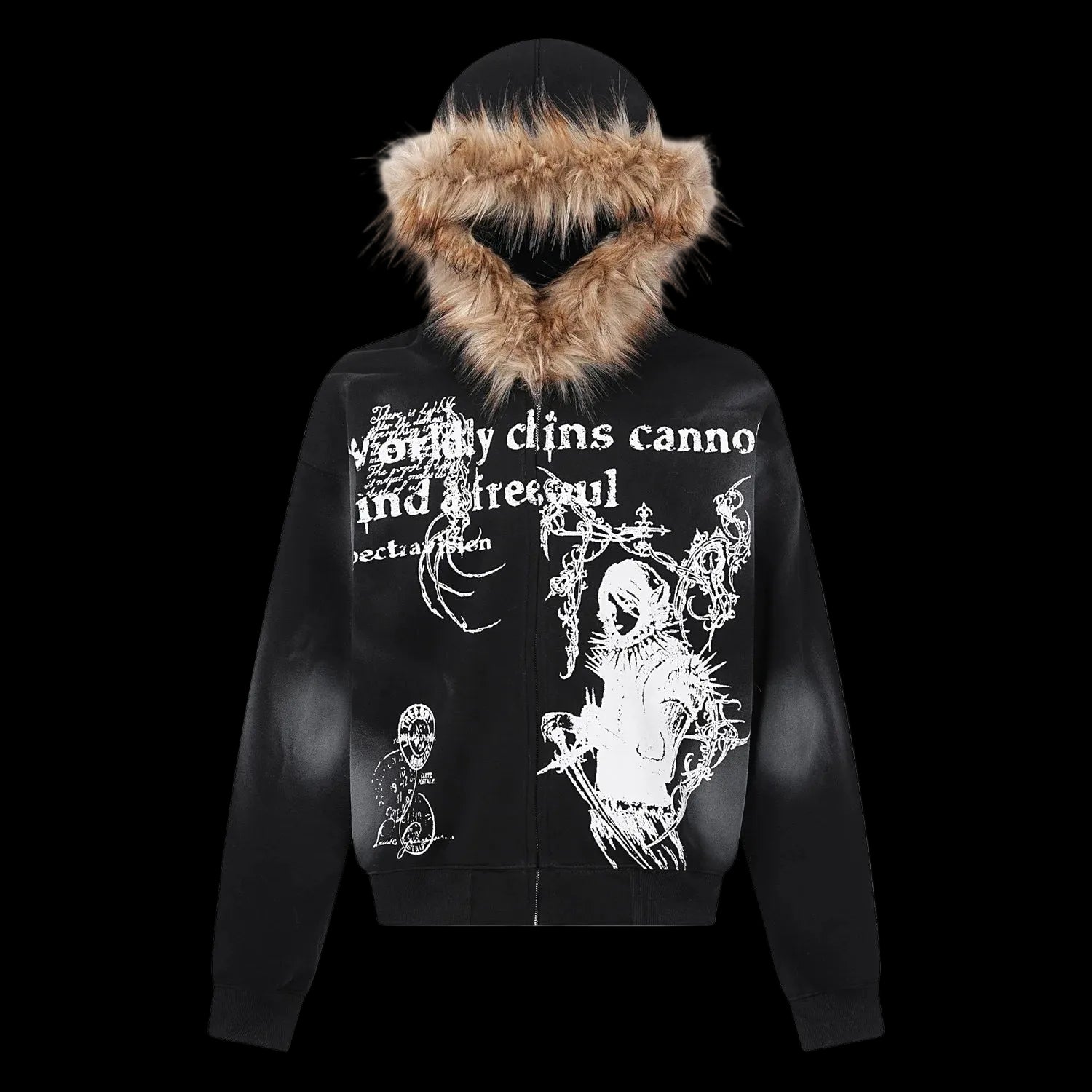 Zip hoodie with a spray paint–inspired graphic and a clean, modern silhouette. Designed with a relaxed fit and soft interior for everyday comfort and easy layering.