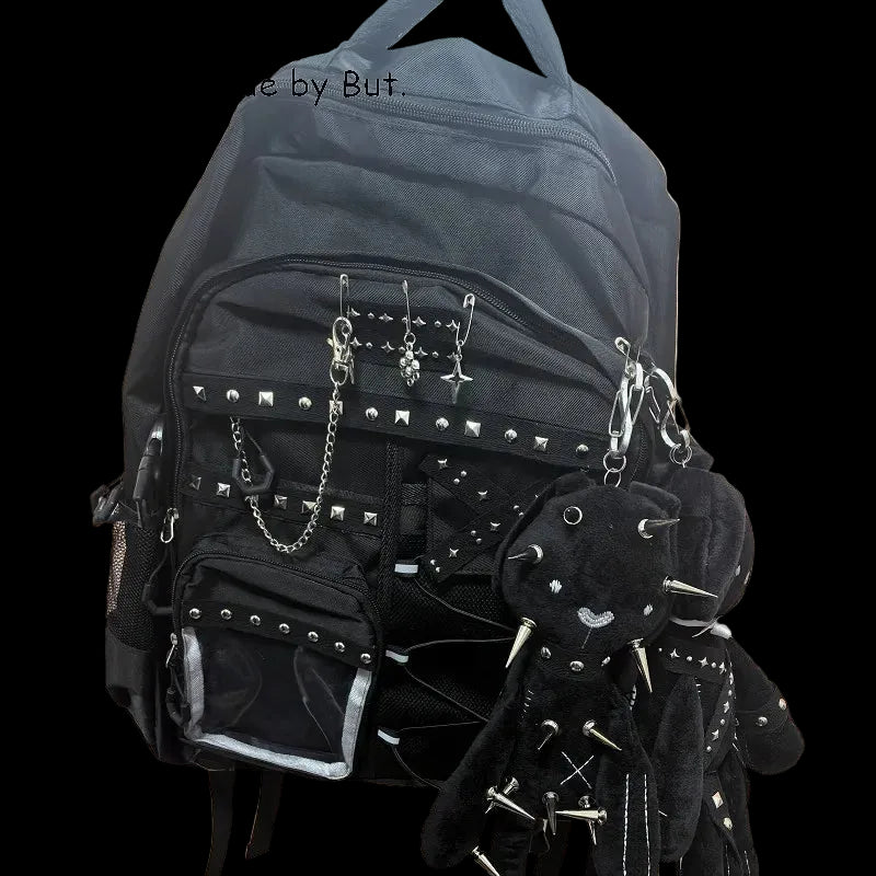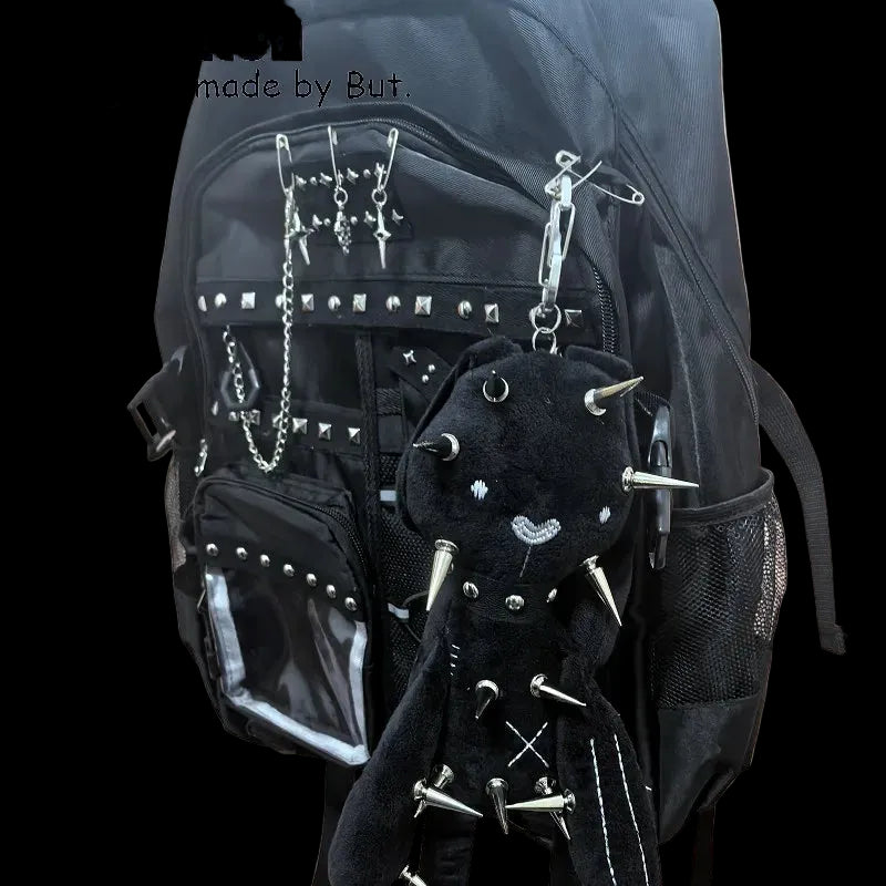 Gothic Lolita-inspired keychain featuring a rabbit doll with hemp rivet rope detailing. Durable construction with a versatile clip for bags, waist chains, or accessories.
